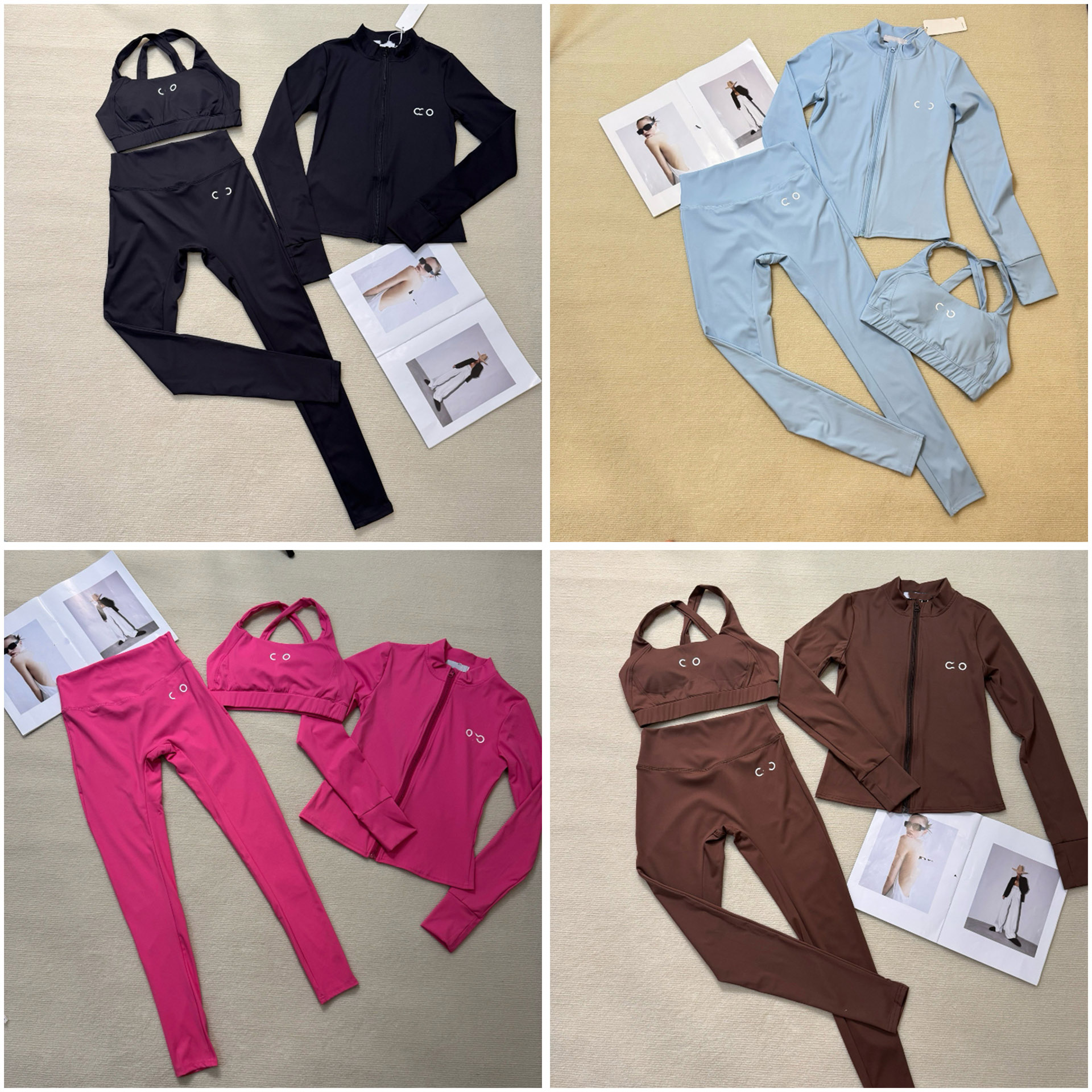 Home > ALO new contrasting color embroidered zippered yoga and workout set-5367