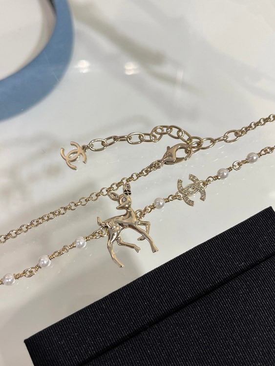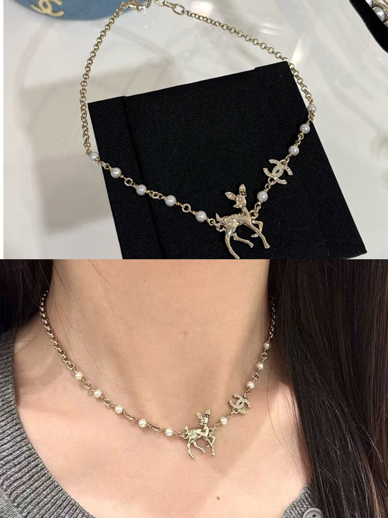 Home > Chanel Golden Deer Full Diamond Double C Pearl Necklace-3749