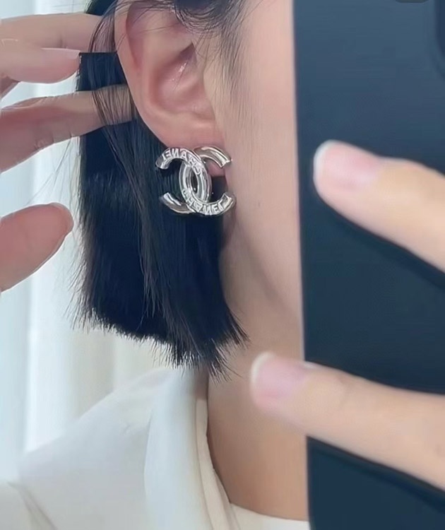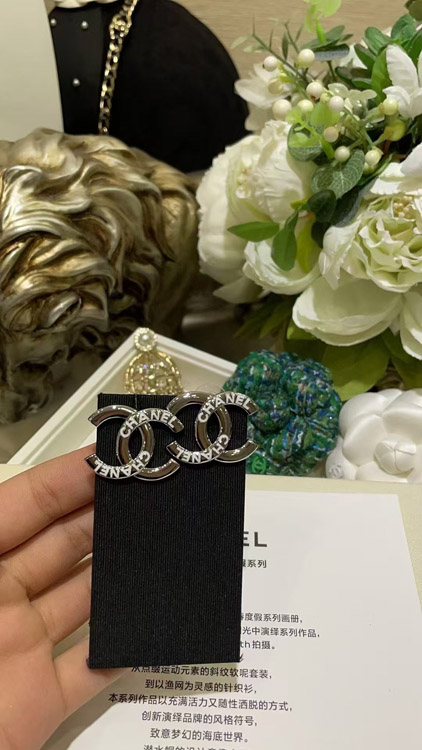Chanel White Enamel Double C Silver Earrings-3743