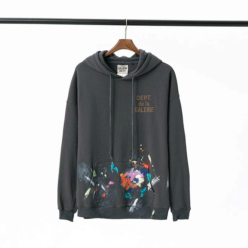 Gallery Dept Drawstring Hood Pullover Hooded Cardigan Sweatshirt-4442