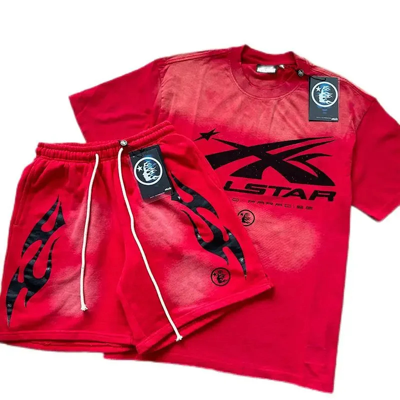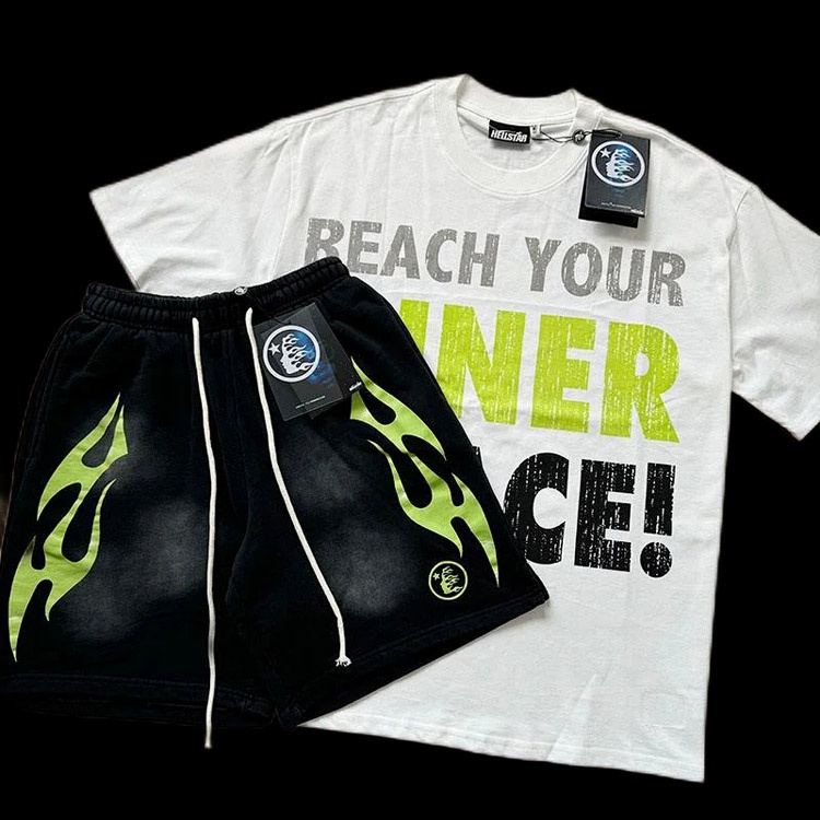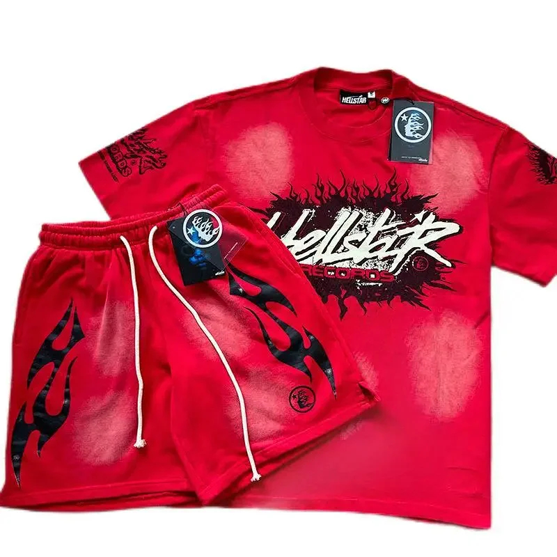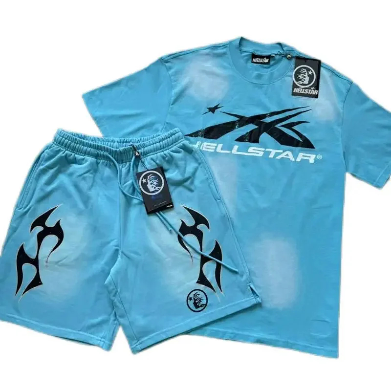 Home > Hellstar printed loose short-sleeved shirt and shorts set-5185