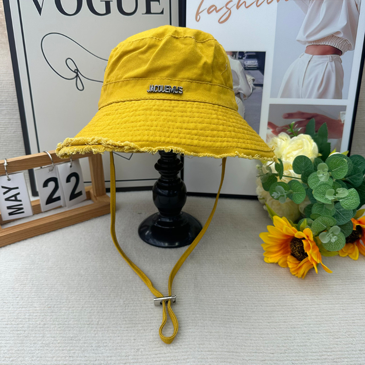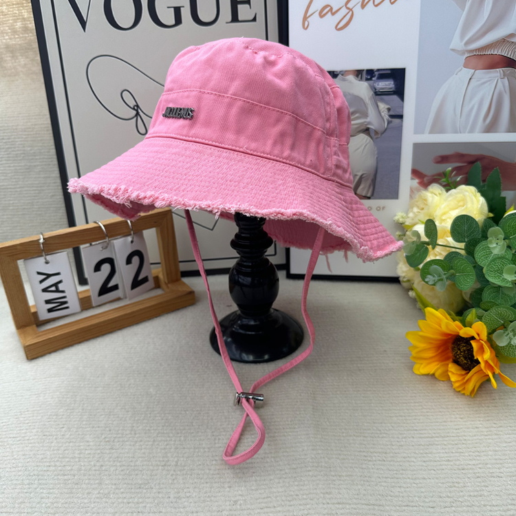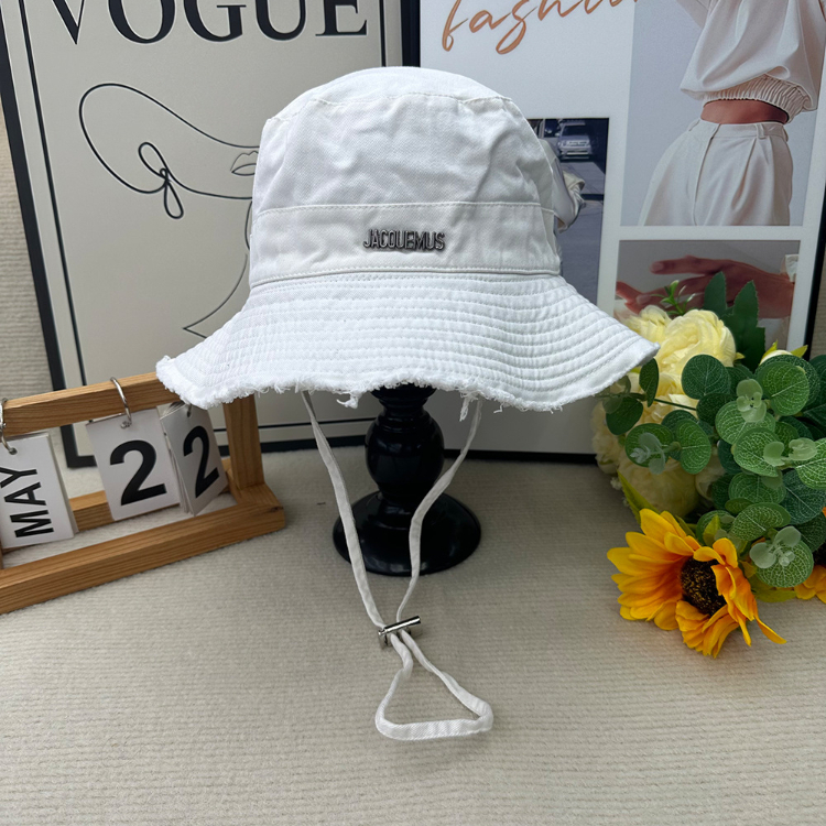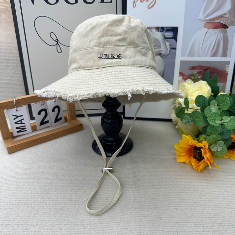 Jacquemus frayed-edge wide-brimmed bucket hat with drawstring-5982