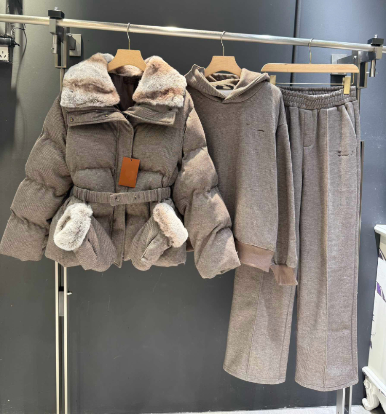 Loro Piana new four-piece suit with fur collar and waist belt-5382