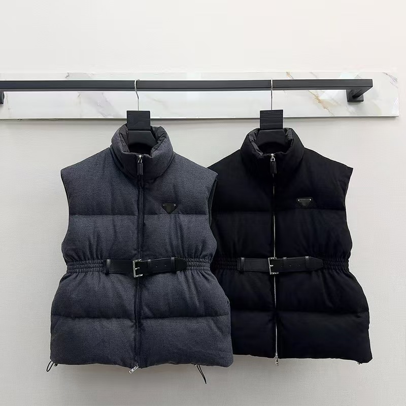 Prada new stand-collar down vest with logo and adjustable waist-5354