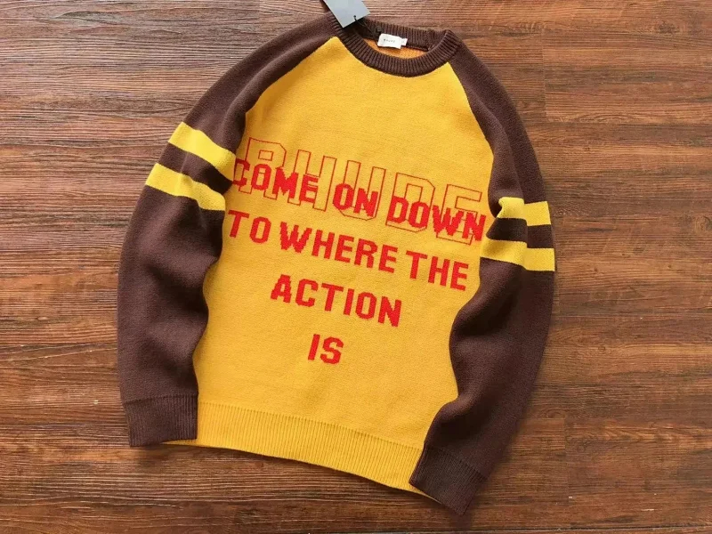 RHUDE New Simple Contrast Color Design Letter Loose Sweater-2141