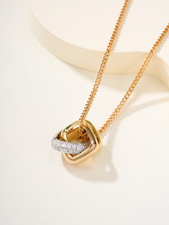 Tiffany cushion-shaped three-color ring diamond necklace-3680